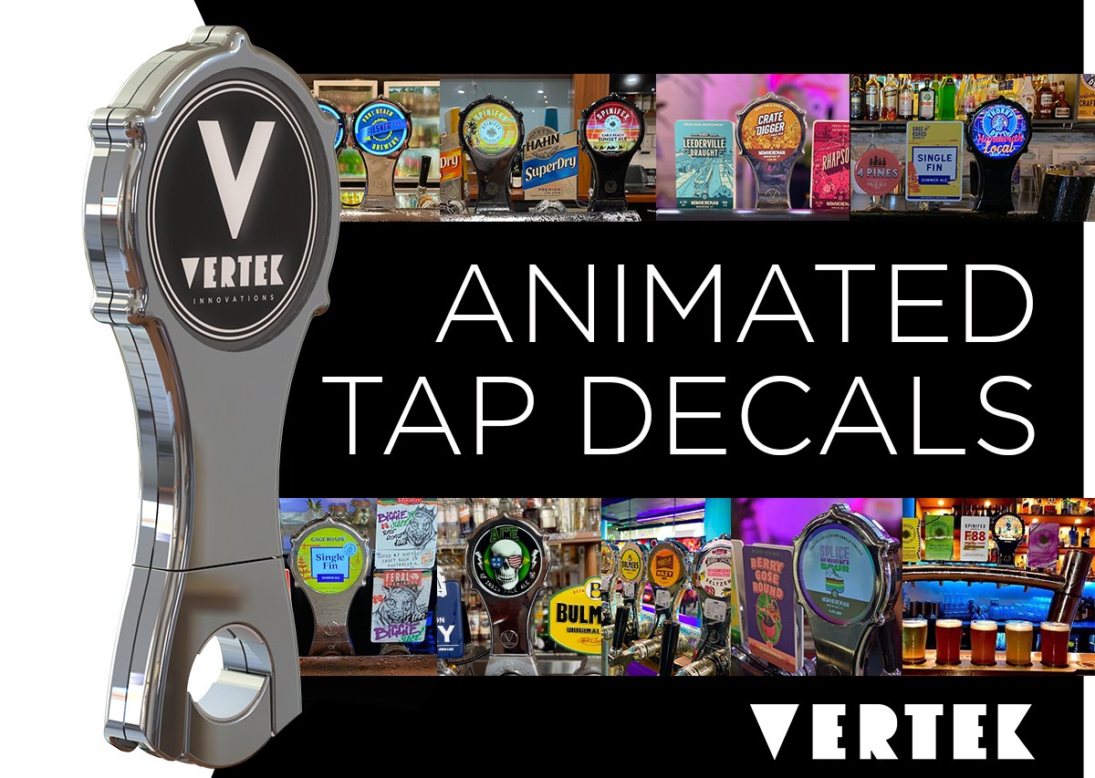 Vertek animated tap decals (LAB), still a very new concept to the hospitality industry.