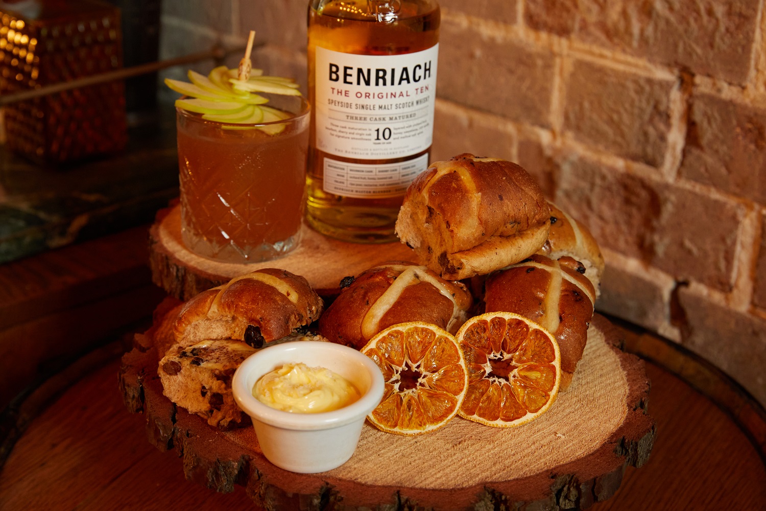 “Benriach The Original Ten has been three cask matured in bourbon barrels, sherry casks and virgin oak, to create layers of luscious orchard fruit, sumptuous honeyed malt and toasted oak, all interwoven with a subtle trace of smoke. These sweet, fruit-laden flavours perfectly compliment the signature flavours of a hot cross bun,” she said.