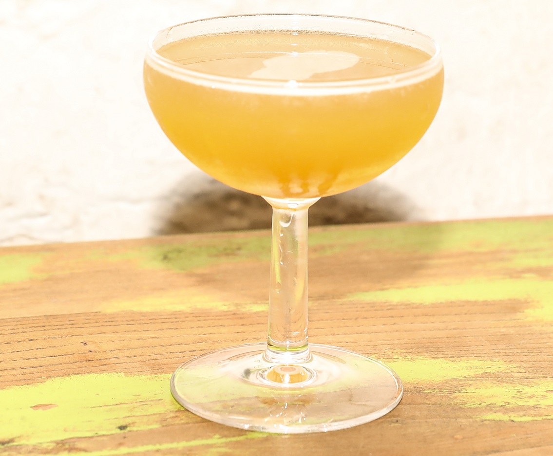 2. Double strain into a Champagne coupe glass