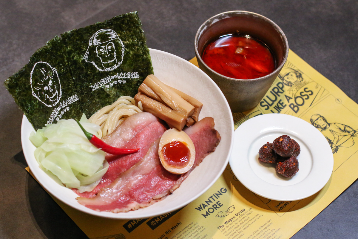 Mashi No Mashi, an upmarket ramen and wagyu restaurant, boasts a...