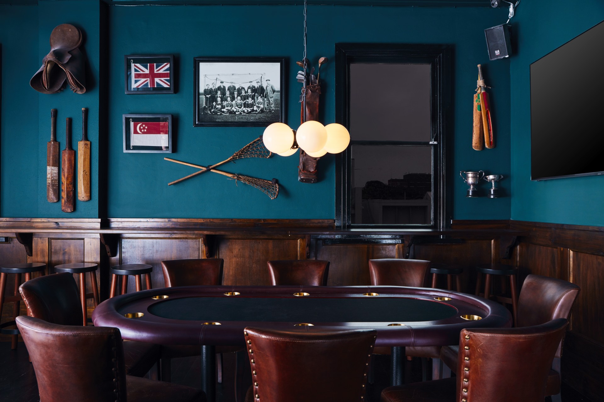 Located up two flights of stairs, the Athletic Club is a trip down time-travellers lane and into the sporting-themed bar of your dreams. Designed to look like a centuries past gentleman’s club, the space features darkened panelling, classic worn leather seats shaped into roomy booths, a bespoke poker table and historic sporting memorabilia.