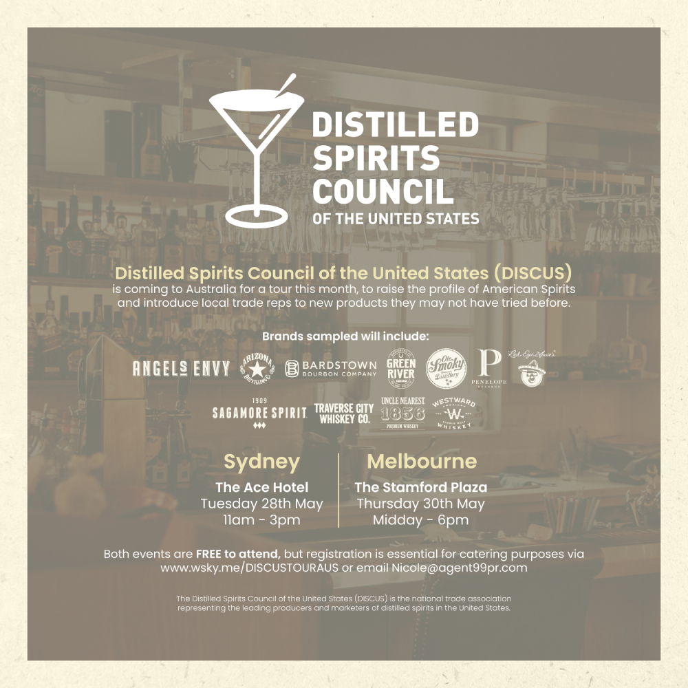 Distilled Spirits Council of the United States (DISCUS) is coming to Australia for a tour this month, to raise the profile of American Spirits and introduce local trade reps to new products they may not have tried before.